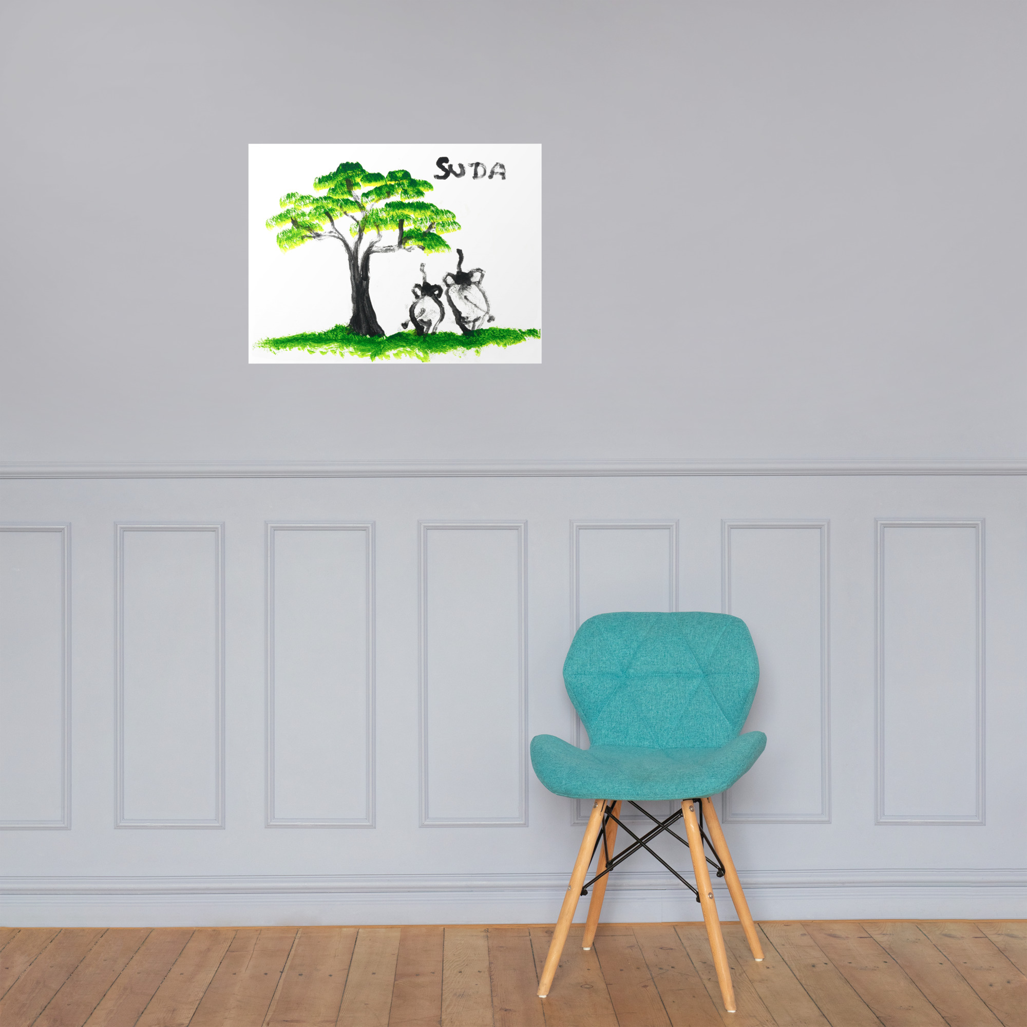 “Just The Two of Us” is a print of a beloved painting by the elephant artist, Suda, featuring two elephants beside a tree, symbolizing unity and solidarity. This print beautifully conveys the themes of togetherness and nature. It’s a replica of one of Suda’s most acclaimed works, showcasing her remarkable ability to stir emotions through art.